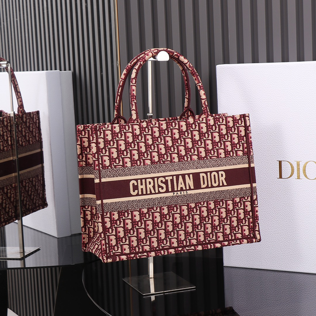 medium D*or book tote oblique burgundy 14 x 11 x 6.5 inches