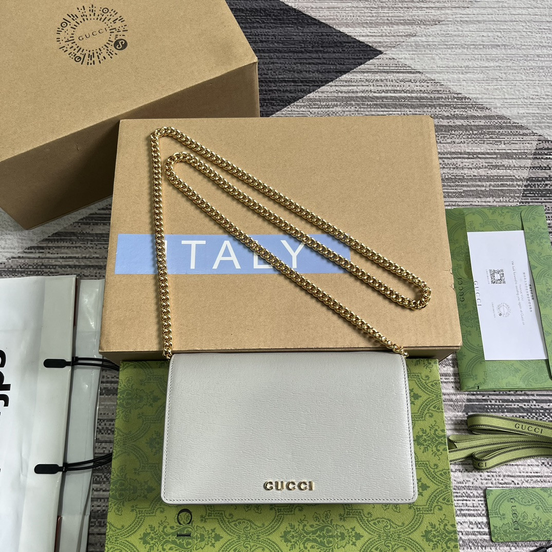 chain wallet with G*u*i script light beige 7.8"w x 5"h x 1.6"d