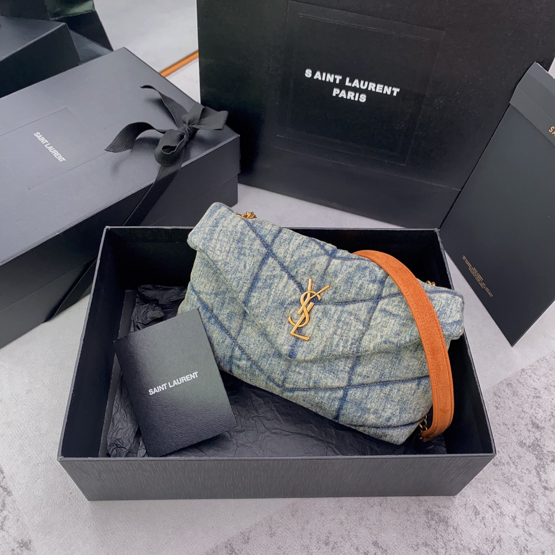 Y*L puffer in suede and denim light blue 23 x 15.5 x 5.8 cm
