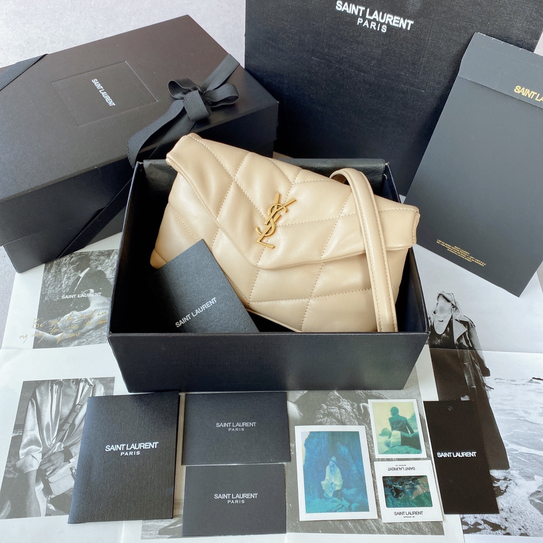 Y*L puffer in leather beige 23 x 15.5 x 5.8 cm
